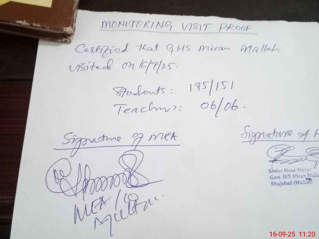 | EMIS Code: 36120013 | Name of School: GHS MIRAN MALLAH SHUJABAD | |||