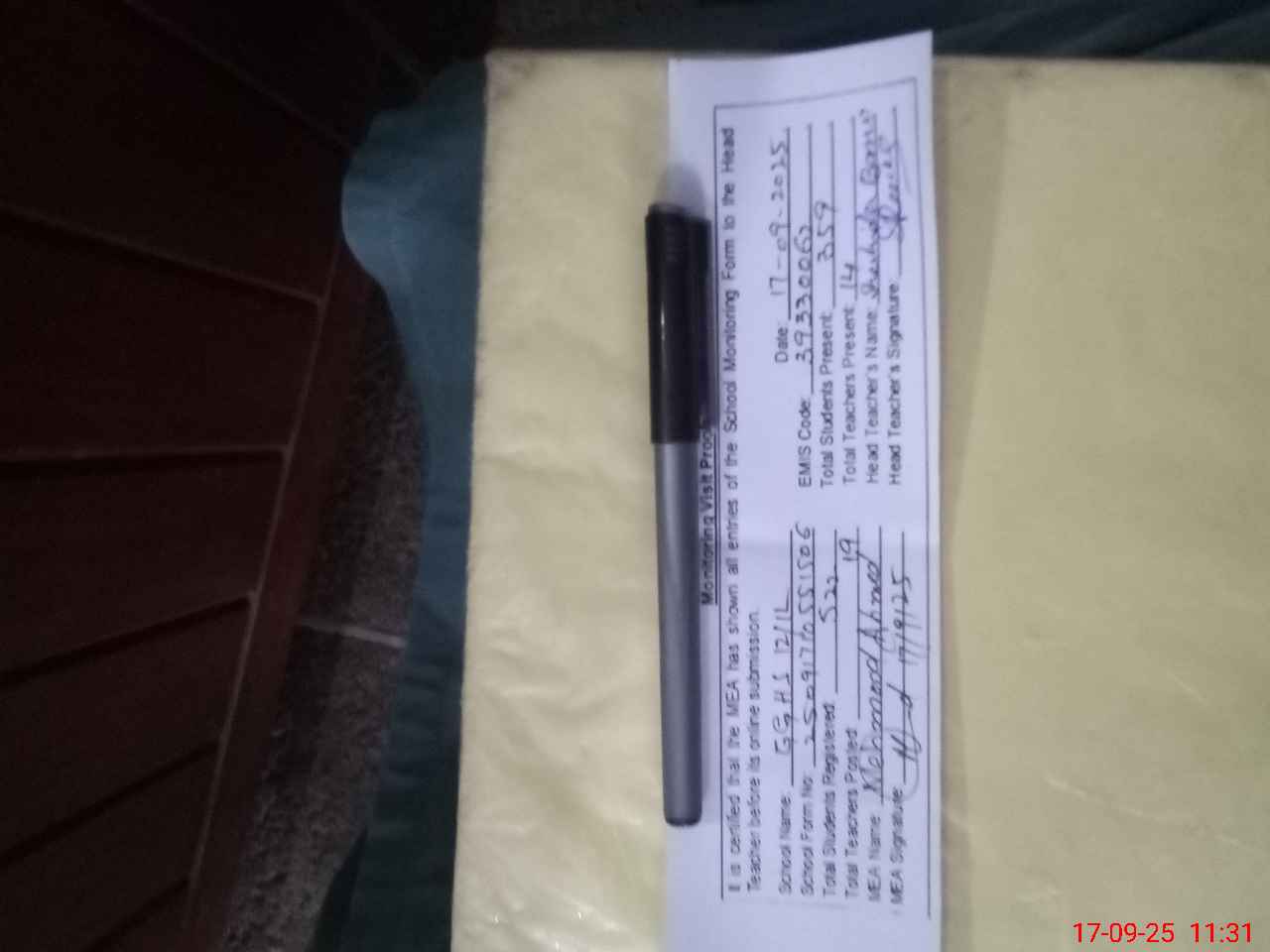 | Attendance Register | Head Teacher | MEA with School | Visit Proof |