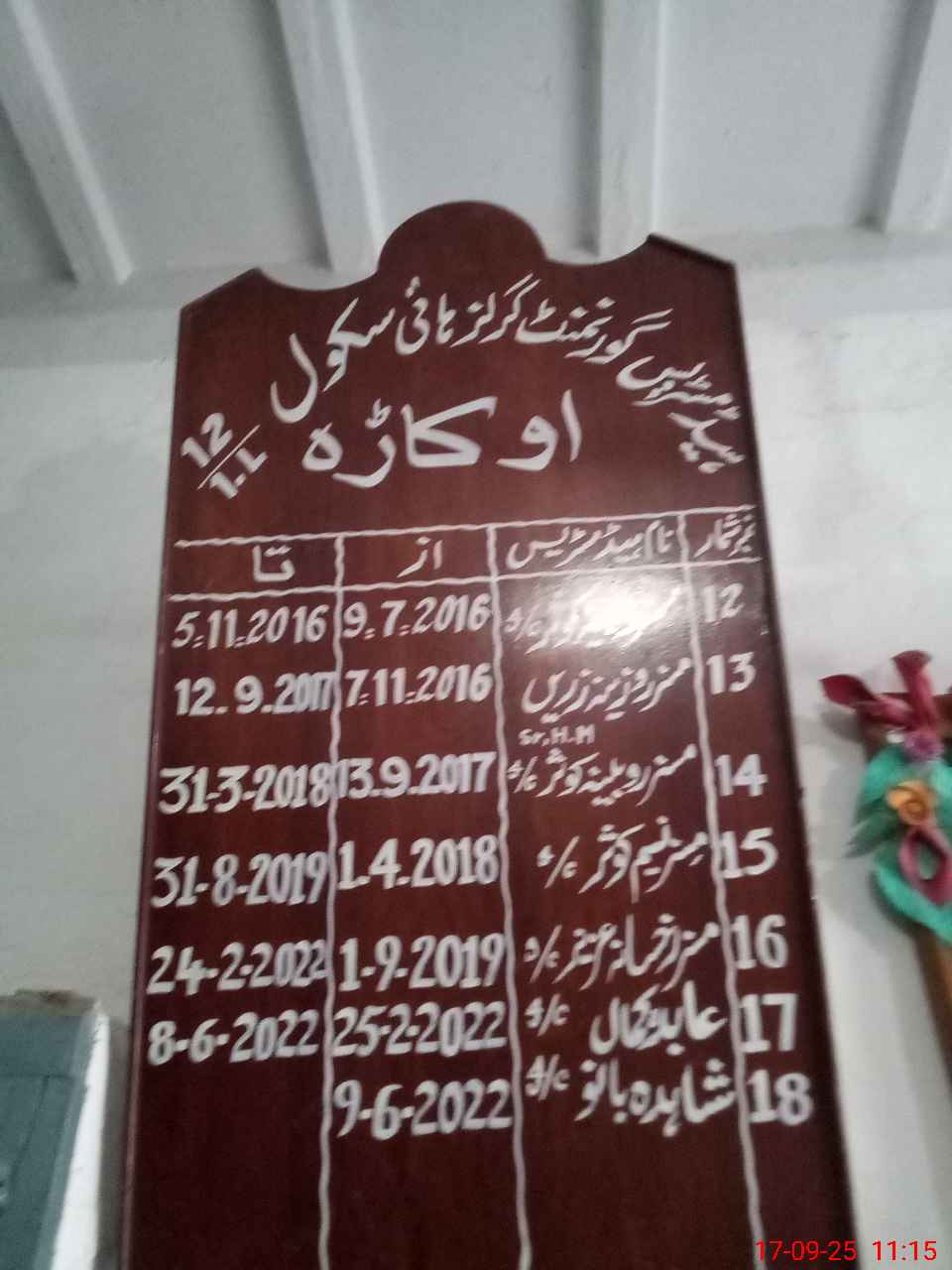| Name: Sh**** Ba**** Designation: (School Headmaster's/Headmistress's) SST Phone/Cell Number: 03**** |