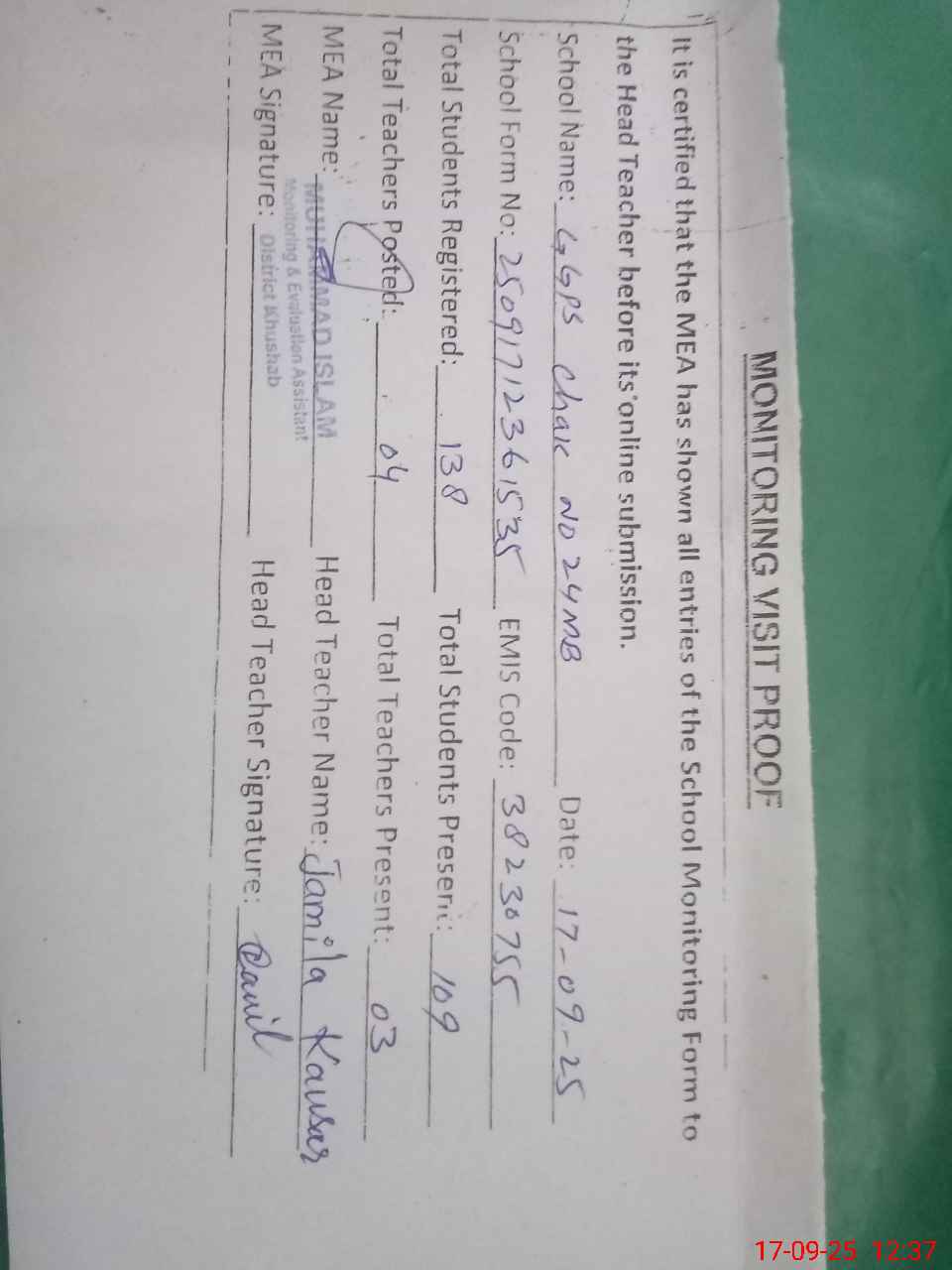 | EMIS Code: 38230755 | Name of School: GGPS CHAK NO 24 MB | |||