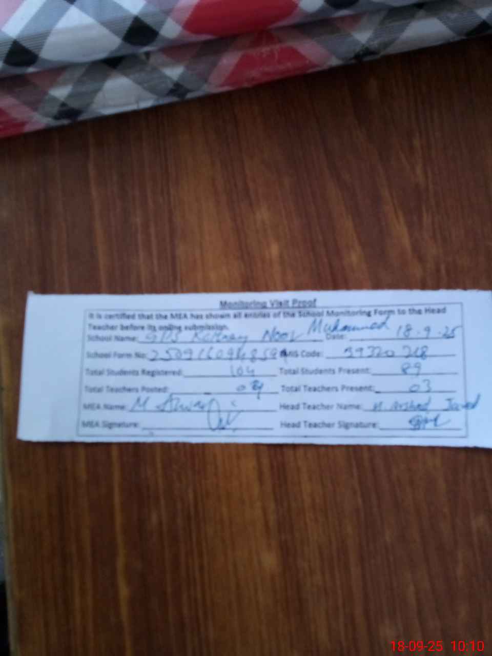 | EMIS Code: 39320218 | Name of School: GPS KOTHAY NOOR MUHAMMAD | |||