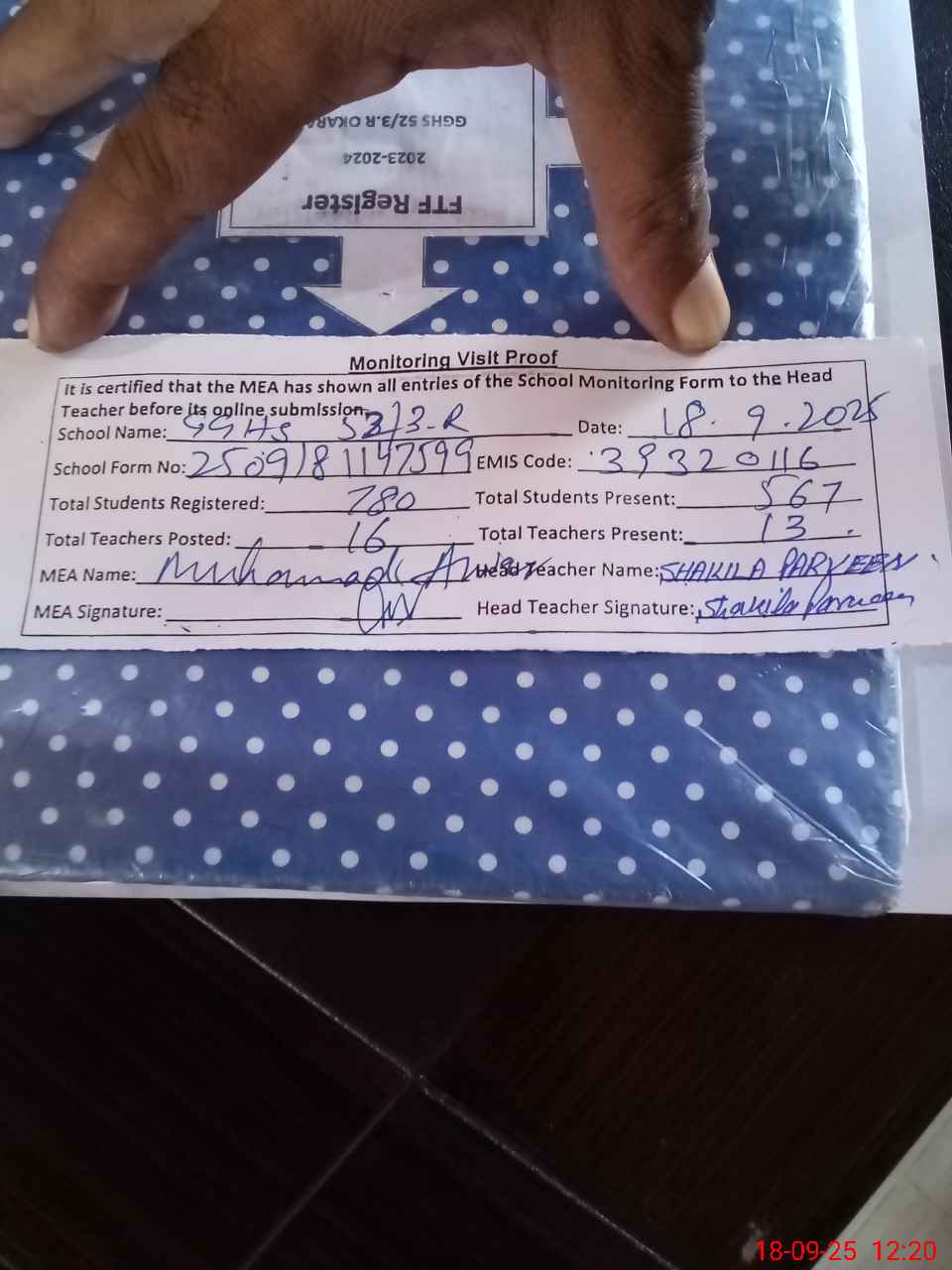 | EMIS Code: 39320116 | Name of School: GGHS 52/3-R | |||