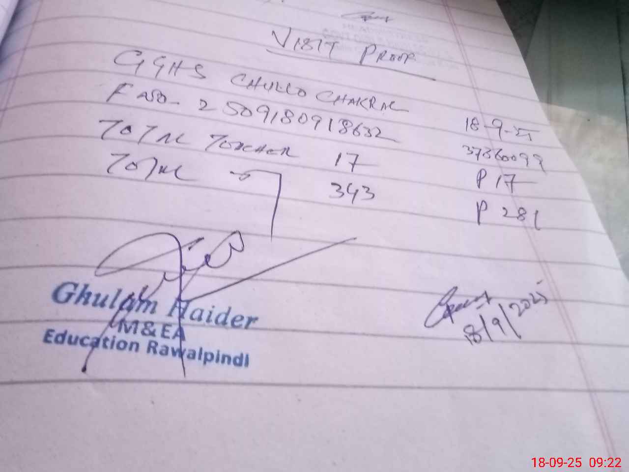 | EMIS Code: 37360099 | Name of School: GGHS CHULLO CHAKRAL | |||