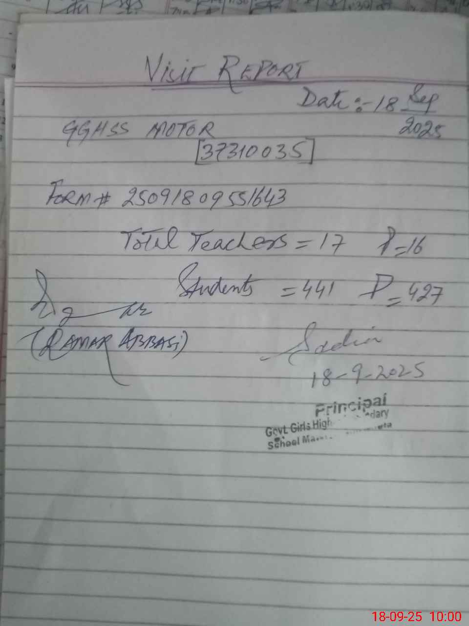 | Name: Aa**** Na**** Designation: (School Headmaster's/Headmistress's) Incharge Principal Phone/Cell Number: 03**** |