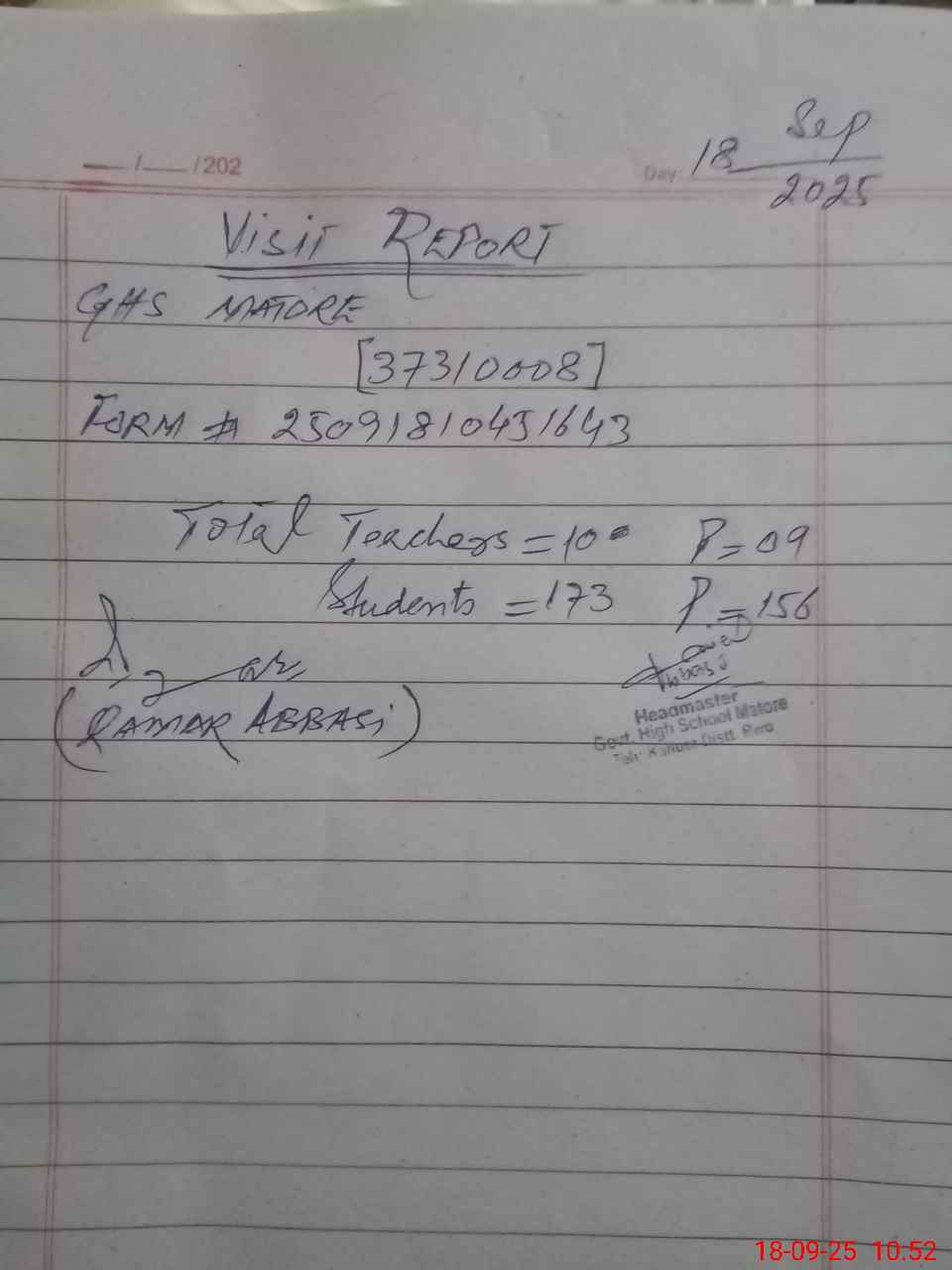 | Name: Ik**** Me**** Designation: (School Headmaster's/Headmistress's) SST (Sci Phone/Cell Number: 03**** |