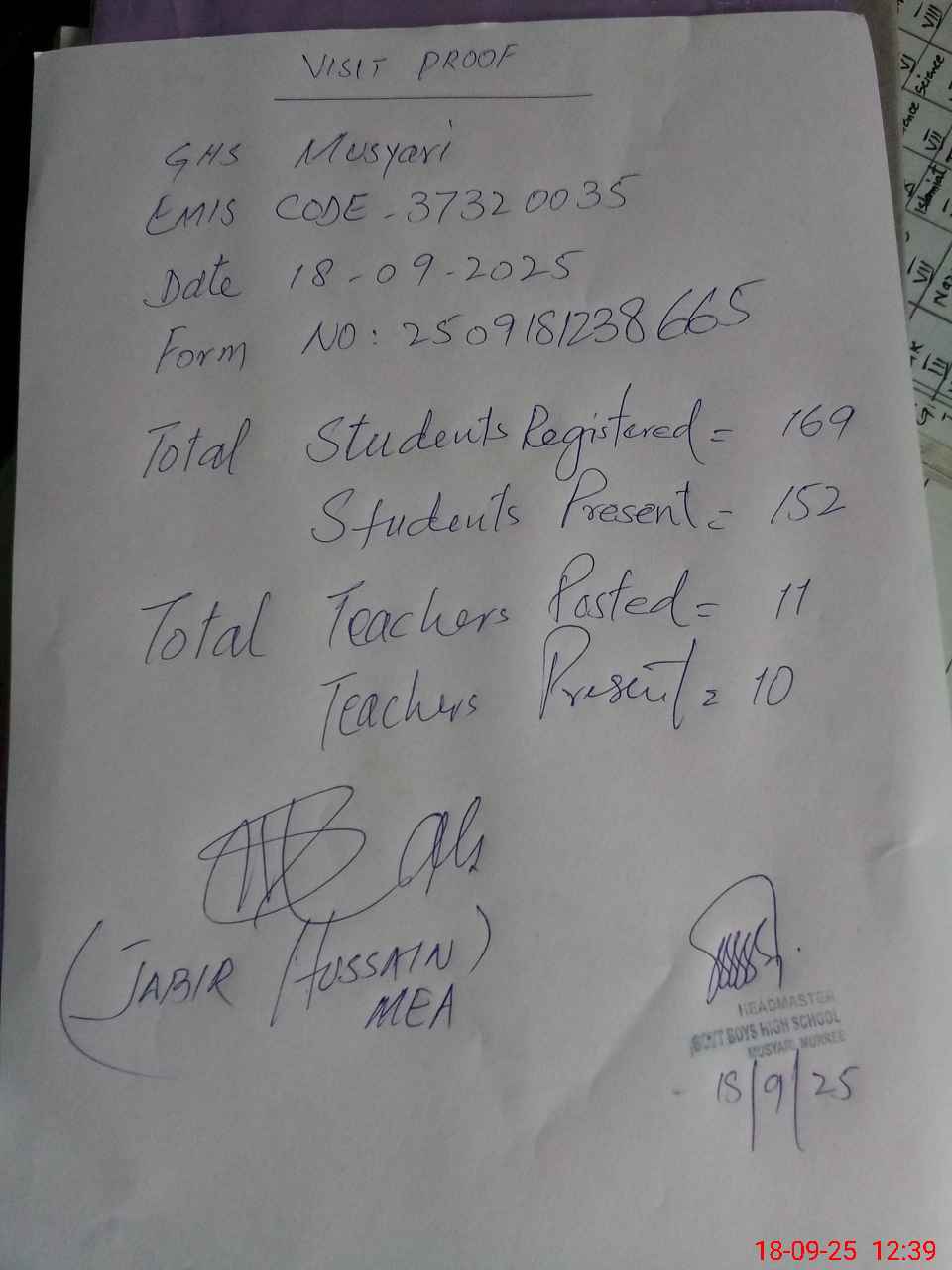 | EMIS Code: 37320035 | Name of School: GHS MUSYARI | |||