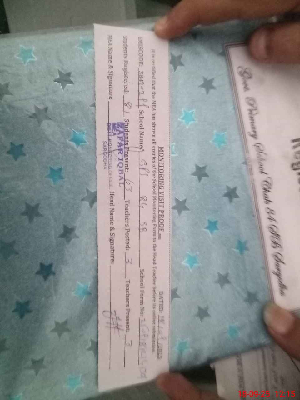| EMIS Code: 38420299 | Name of School: GPS CHAK NO.84 SB | |||
