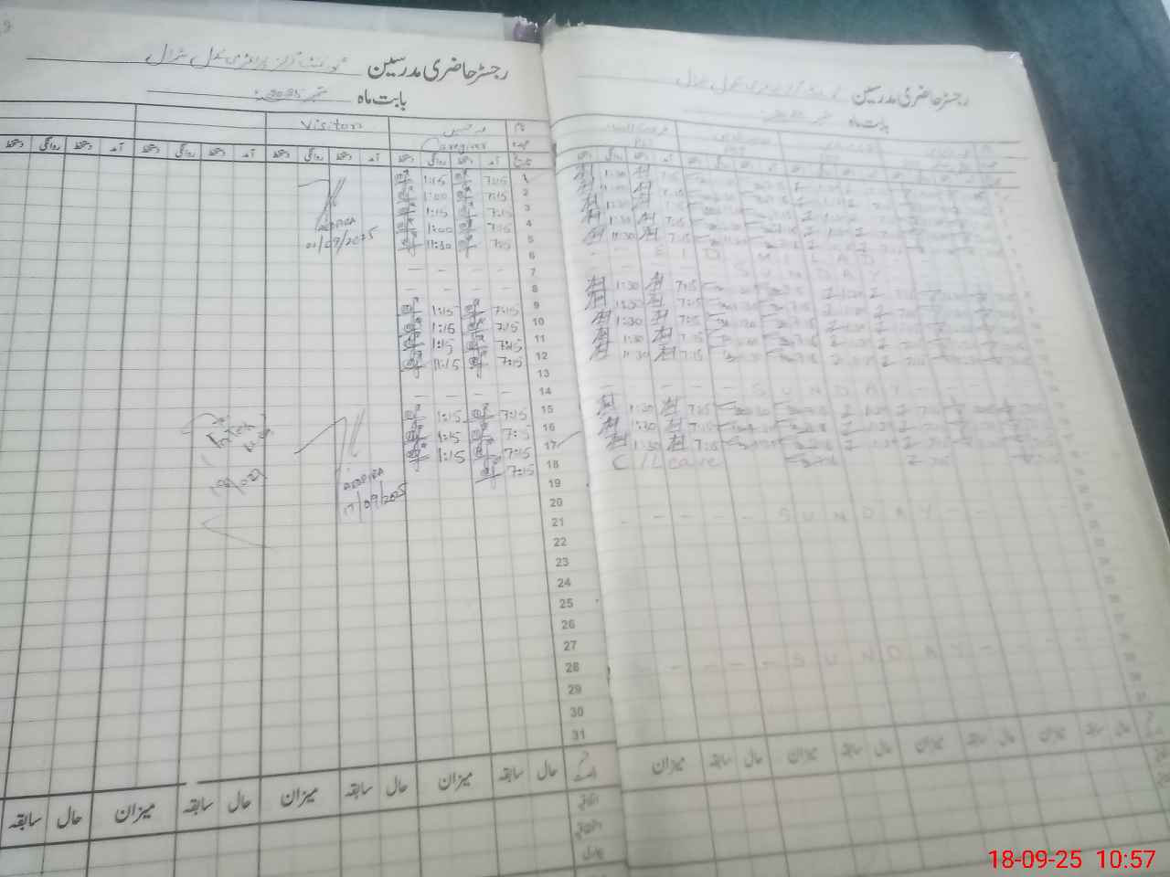 | CNIC | Full Name | Designation | R/C | Absence During Last Calender Month |