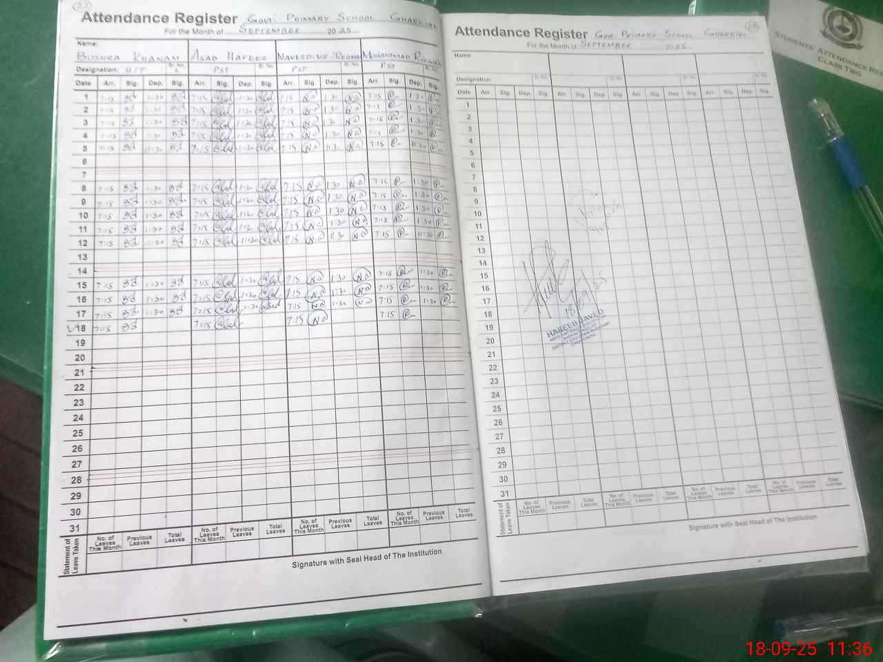| Name: AZ**** FA**** Designation: (School Headmaster's/Headmistress's) PST Phone/Cell Number: 03**** |