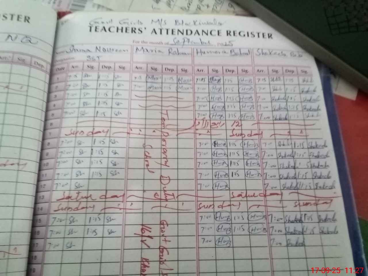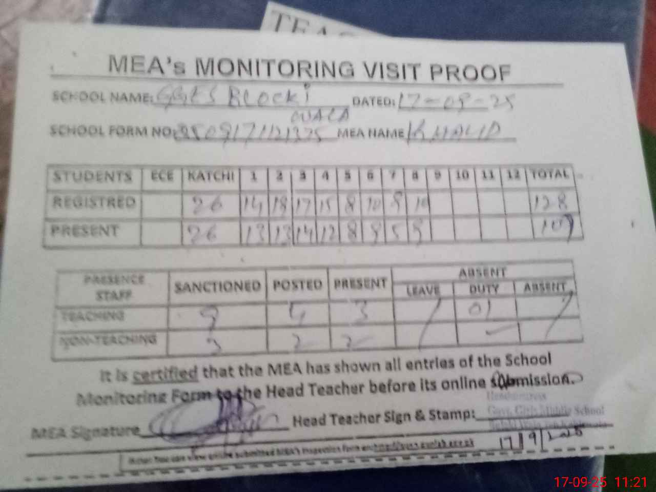 | Remarks (Use Separate Page if Required): GGES BLOCKI WALA SANCTIONED POST 09 FILLED POST 04 OUT OF 04 TEACHERS 01 TEACHER MARIA RAHEEM EST IS ON TEMPORARY DUTY SINCE 27 02 2025 TILL DATE SCHOOL IS FACEING BIG TEACHERS SHORTAGE PROBLEM | |||||