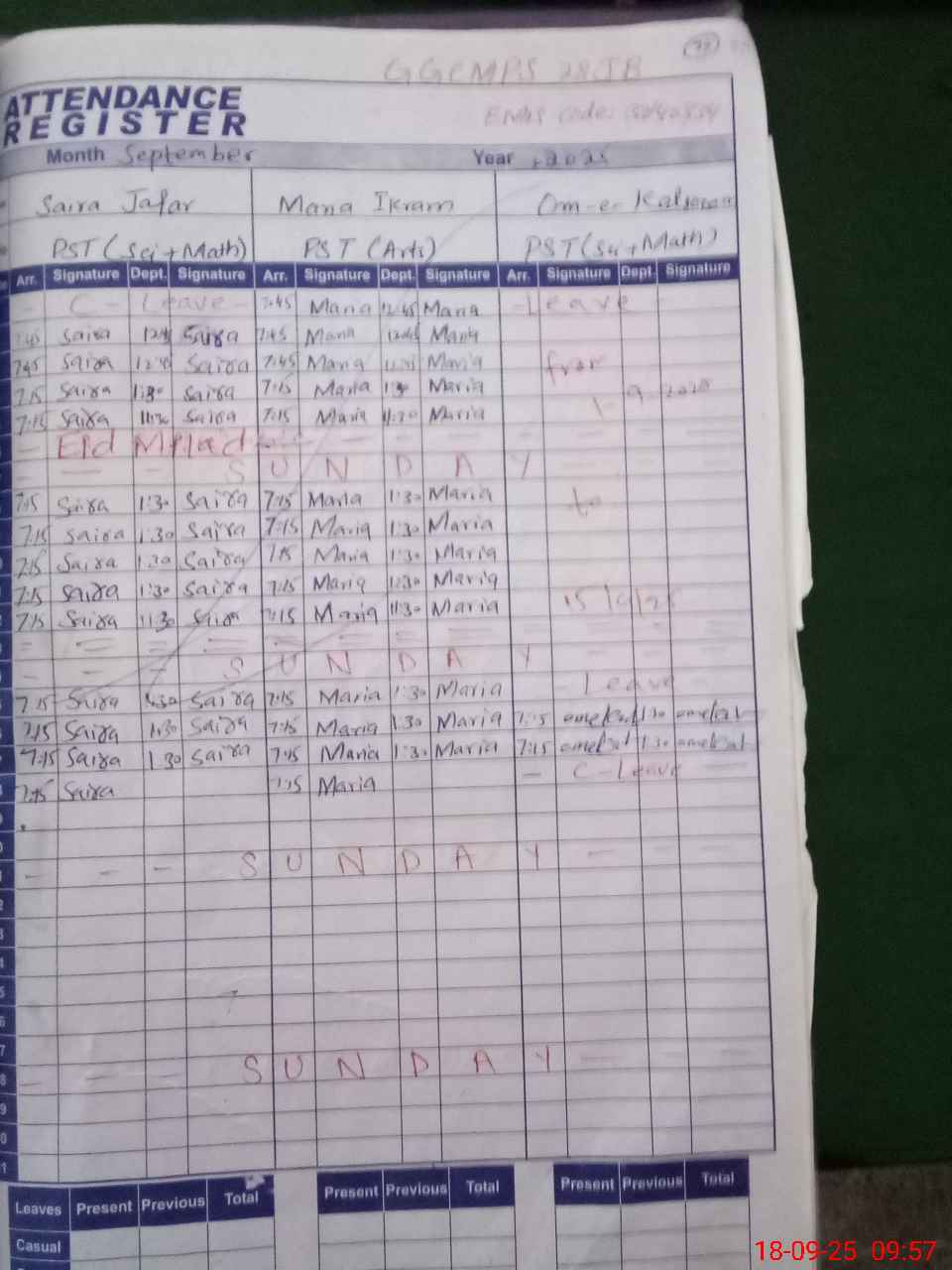 | Monitoring Date: 18-09-2025 | Start Time: 18-09-2025 09:15 AM | End Time: 18-09-2025 09:58 AM | Name of MEA: AR**** HA**** | |