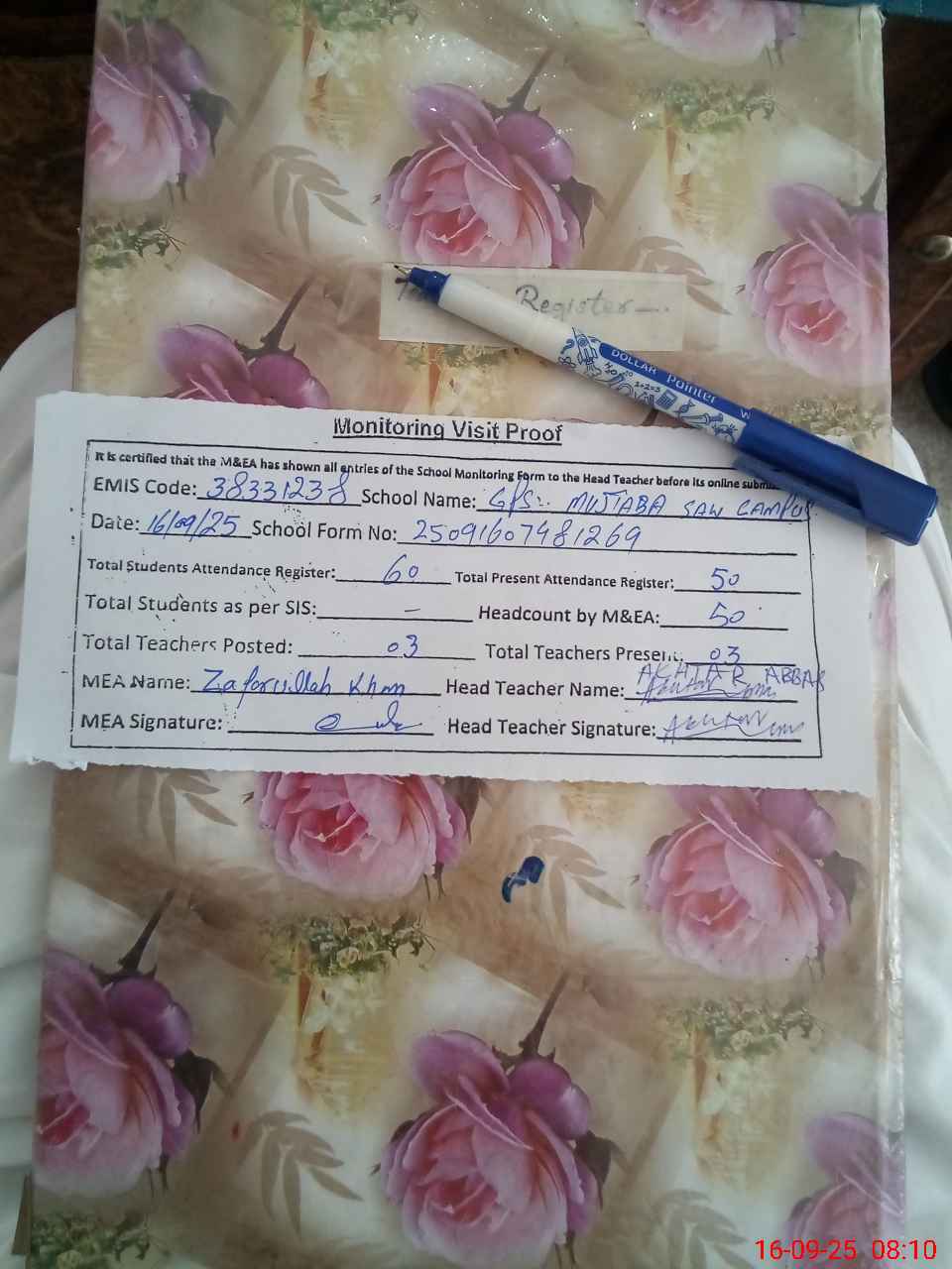| EMIS Code: 38331238 | Name of School: GPS Mujtaba (SAW) Campus Piplan | |||