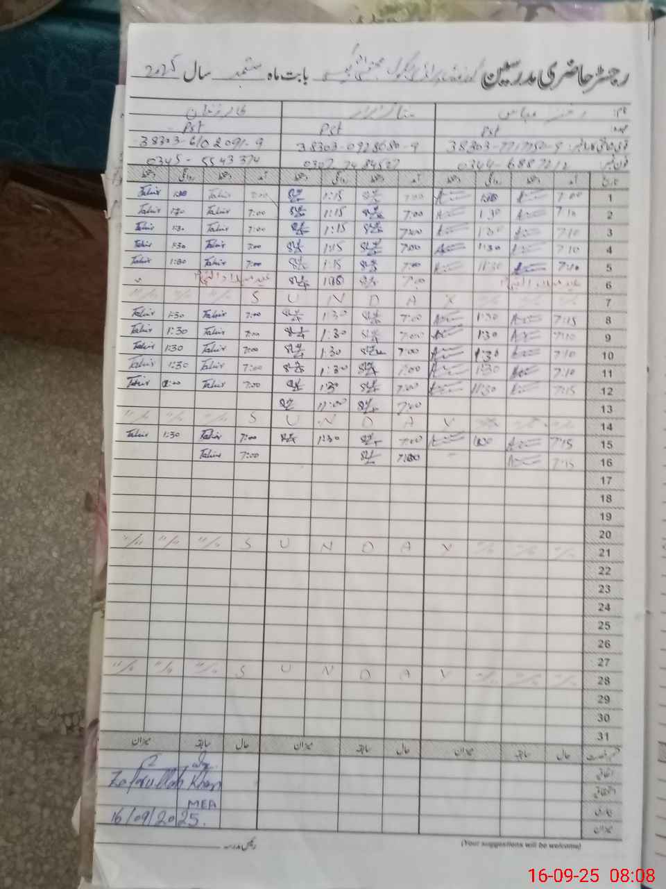 | Name: AK**** AB**** Designation: (School Headmaster's/Headmistress's) PST Phone/Cell Number: 03**** |