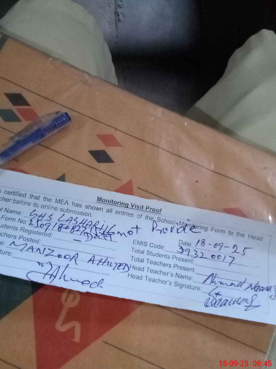 | EMIS Code: 39320017 | Name of School: GHS LASHARI | |||
