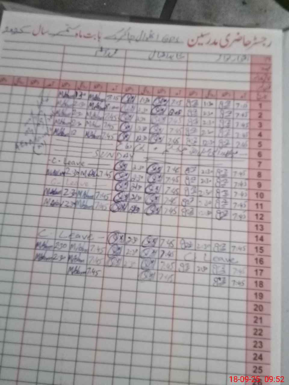 | CNIC | Full Name | Designation | R/C | Absence During Last Calender Month |