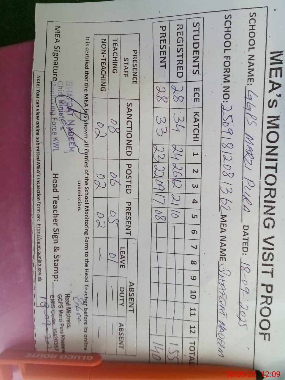 | EMIS Code: 36420357 | Name of School: GGPS MARZI PURA, KHANEWAL | |||