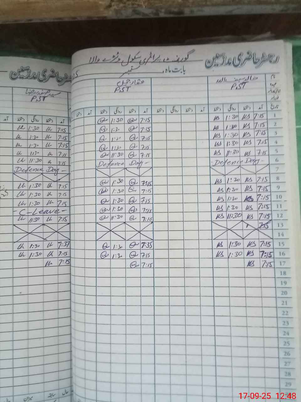 | CNIC | Full Name | Designation | R/C | Absence During Last Calender Month |