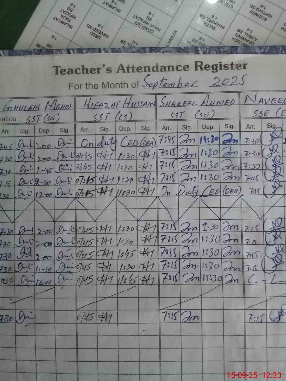 | CNIC | Full Name | Designation | R/C | Absence during last cal. month |
