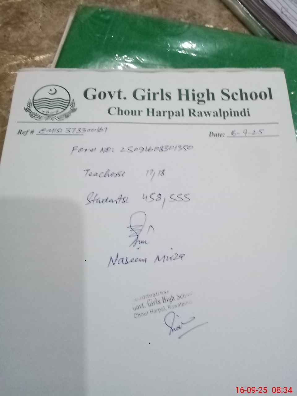 | EMIS Code: 37330167 | Name of School: GGHS CHUR HARPAL RAWALPINDI | |||
