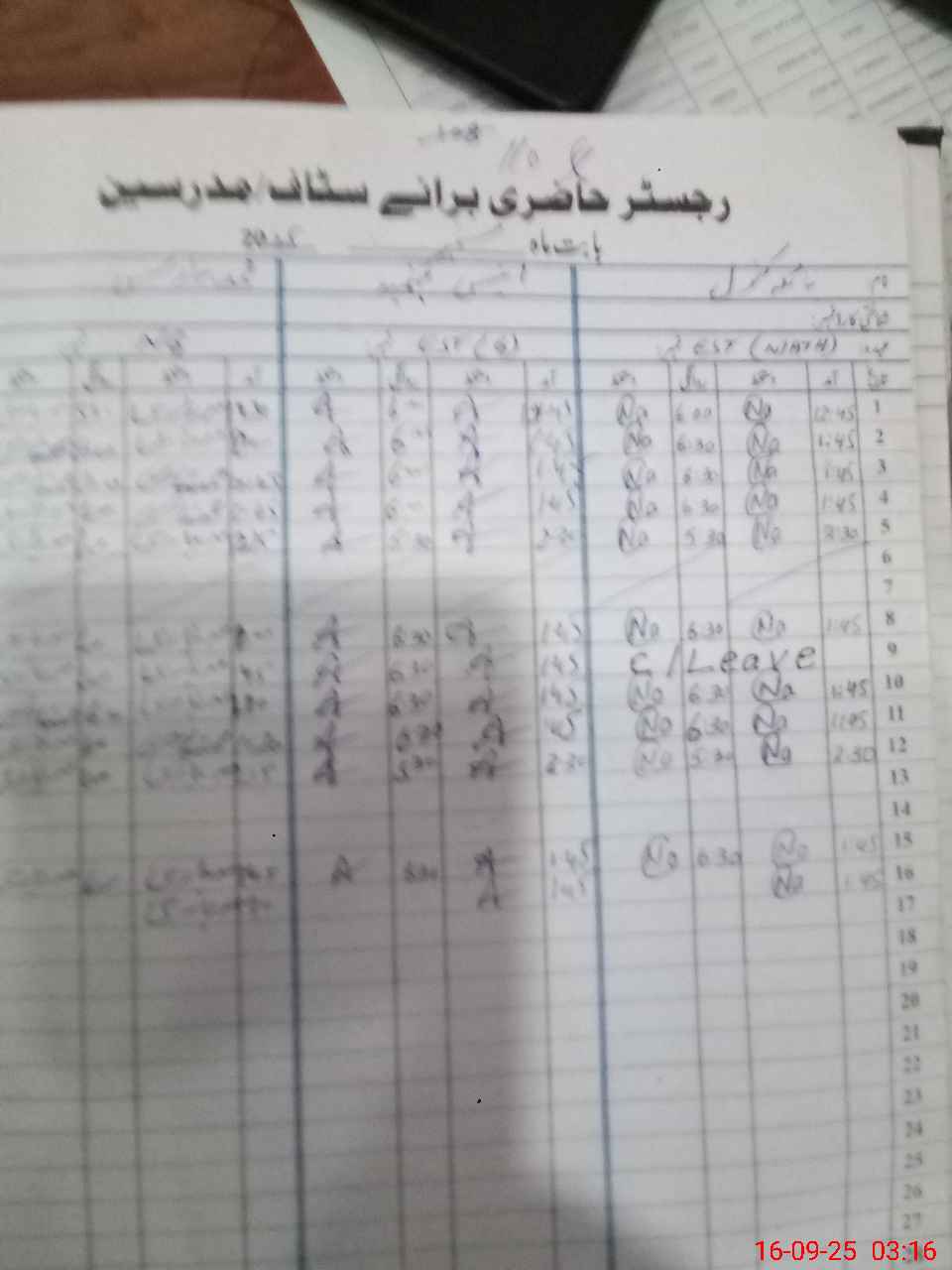 | CNIC | Full Name | Designation | R/C | Absence During Last Calender Month |