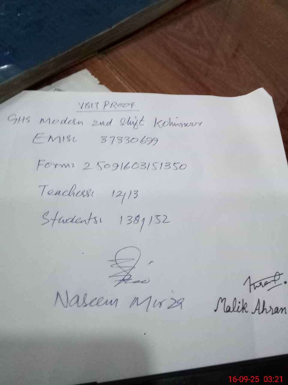 | EMIS Code: 37330699 | Name of School: GHS MODERN (2ND SHIFT GHS KOH-I-NOOR) | |||
