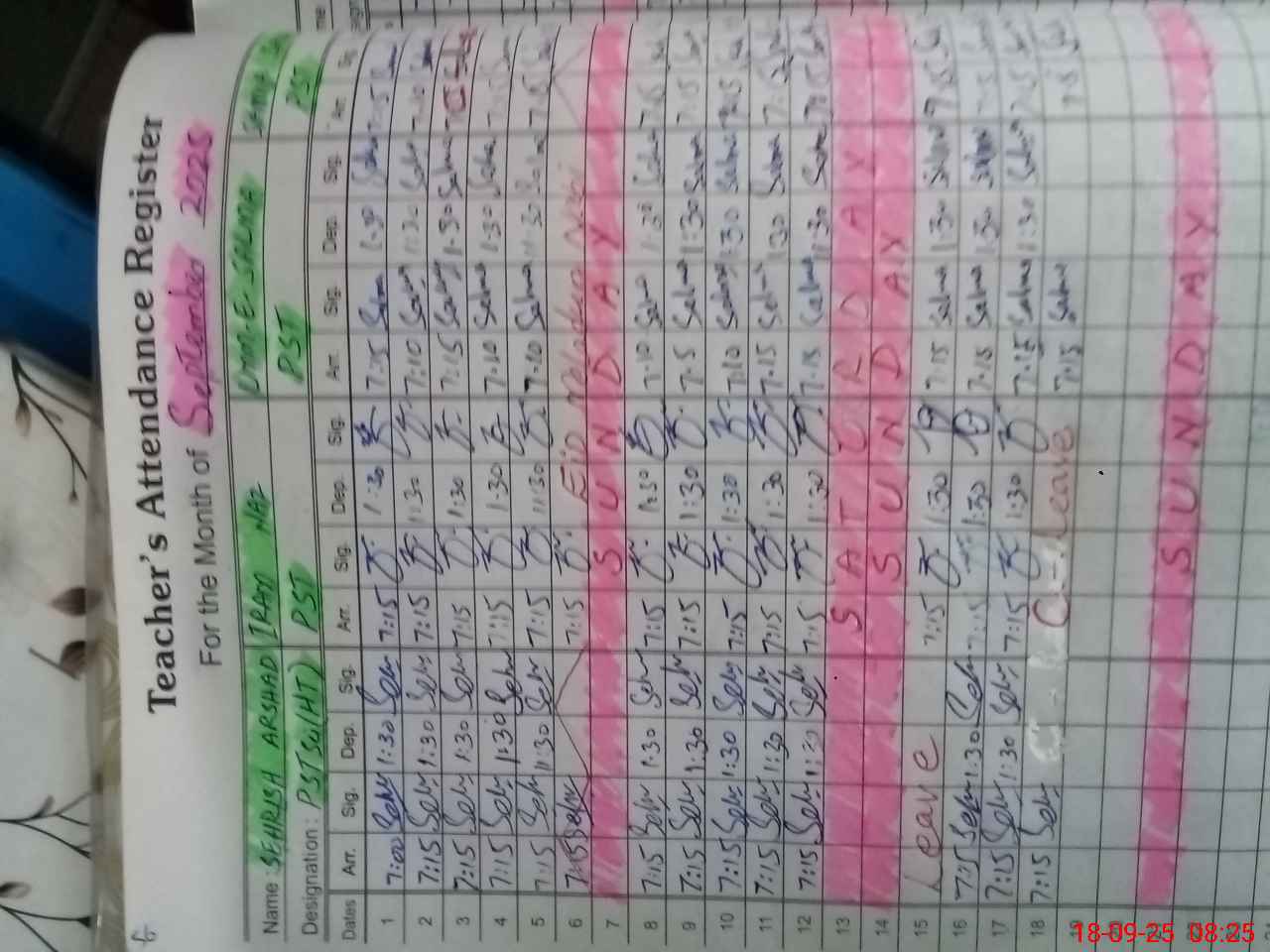 | Name: Se**** Ar**** Designation: (School Headmaster's/Headmistress's) PST Phone/Cell Number: 03**** |