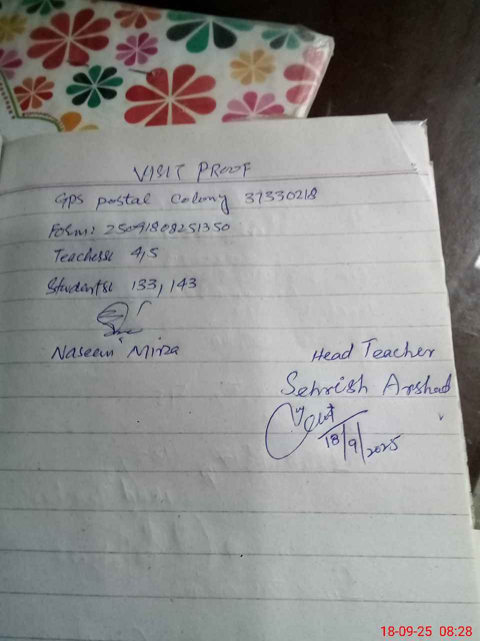 | EMIS Code: 37330218 | Name of School: GPS POSTAL COLONY | |||