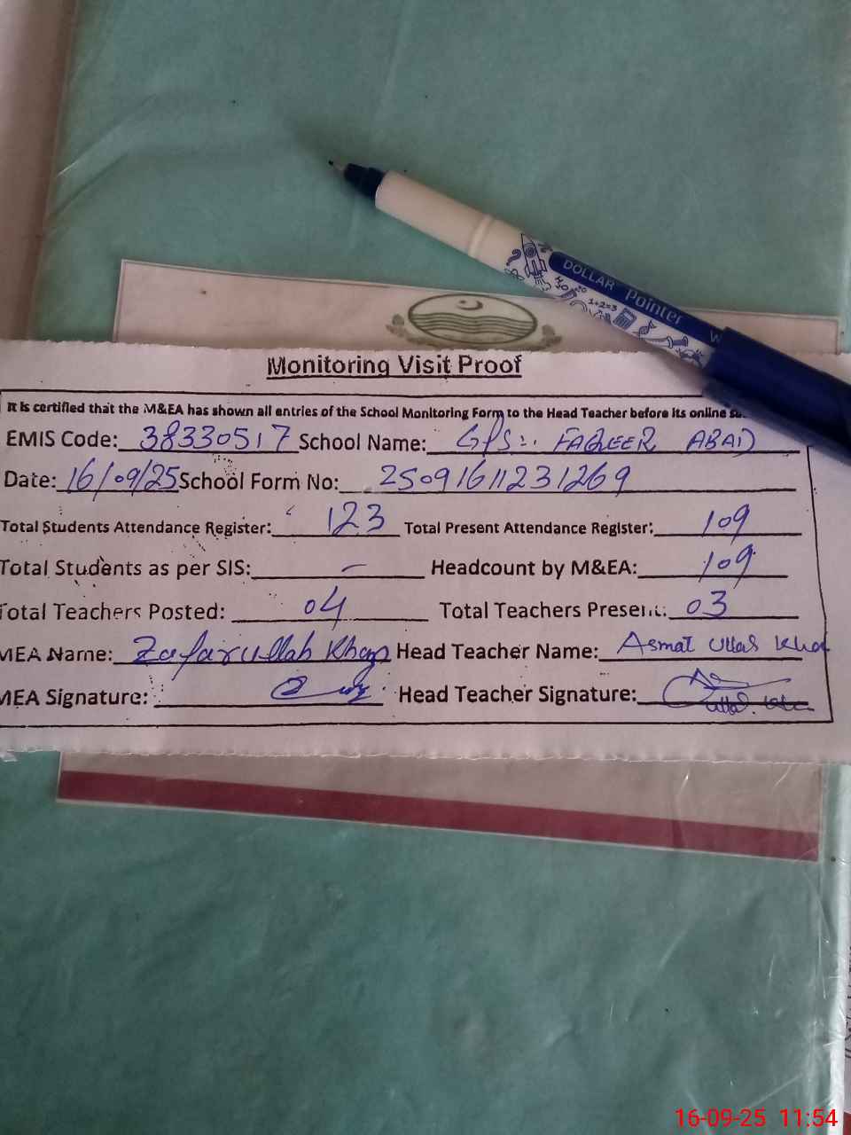 | EMIS Code: 38330517 | Name of School: GPS FAQEER ABAD HAFIZ WALA | |||