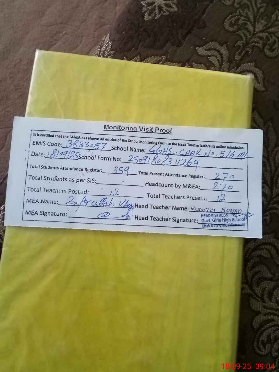 | EMIS Code: 38330157 | Name of School: GGHS CHAK NO. 5-6 ML | |||