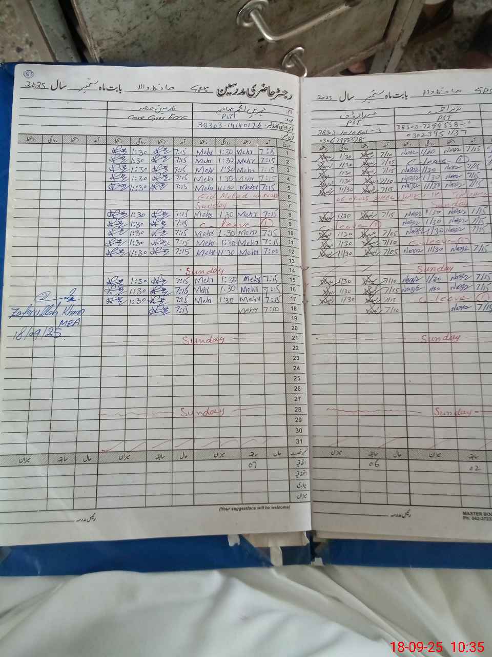 | Name: Mu**** Iq**** Kh**** Designation: (School Headmaster's/Headmistress's) PST Phone/Cell Number: 03**** |