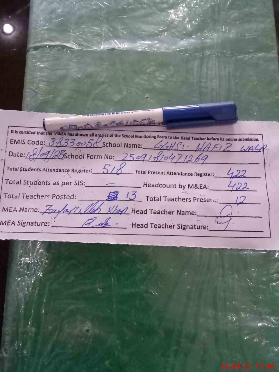 | EMIS Code: 38330058 | Name of School: GGHS HAFIZ WALA | |||