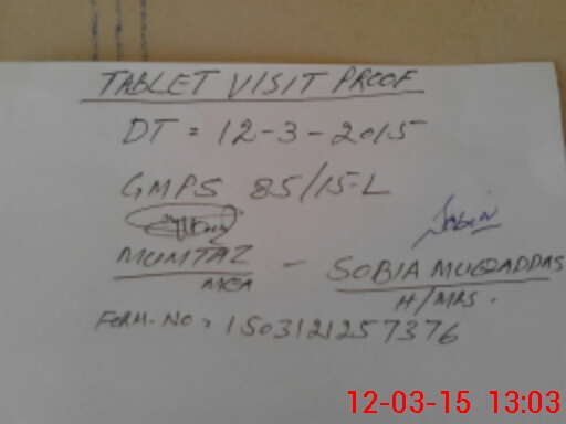 | School Visited by School Health & Nutrition Supervisor (No. of Visits) | 1 | Name1: | Aamir Khan | Name2: | |