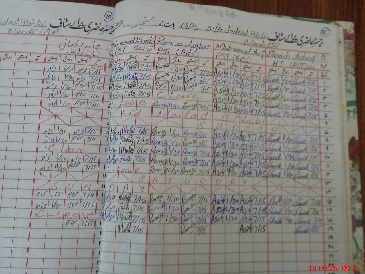 | CNIC | Full Name | Designation | R/C | Absence During Last Calender Month |