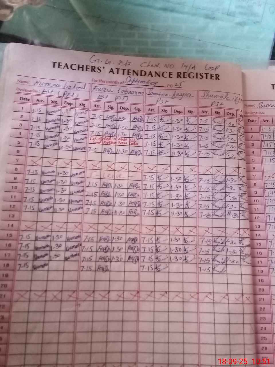 | Name: SA**** MU**** Designation: (School Headmaster's/Headmistress's) SST (Gen) Phone/Cell Number: 03**** |
