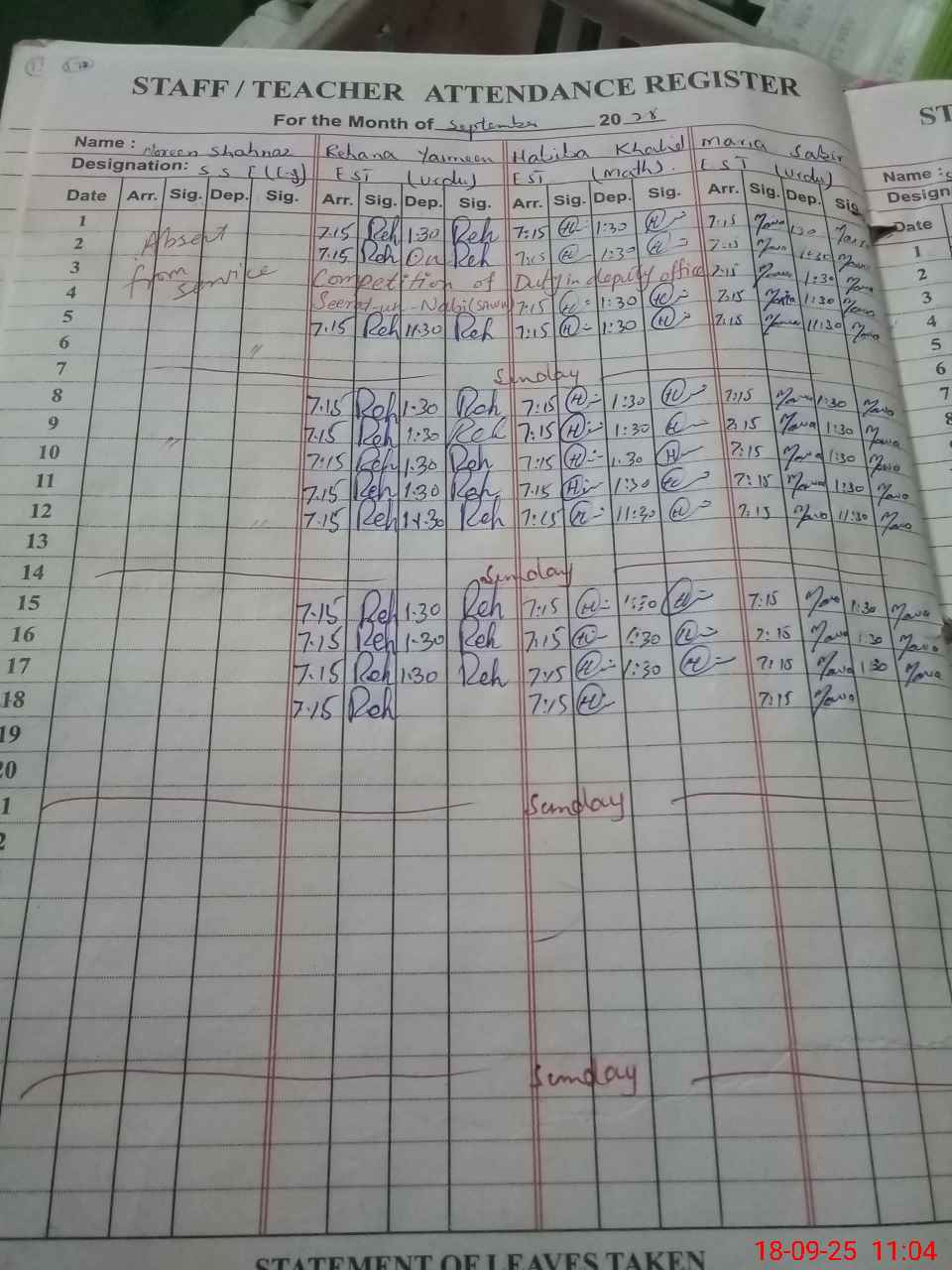 | Leave | Duty | Absent | Maternity | Medical | Ex- Pak |
