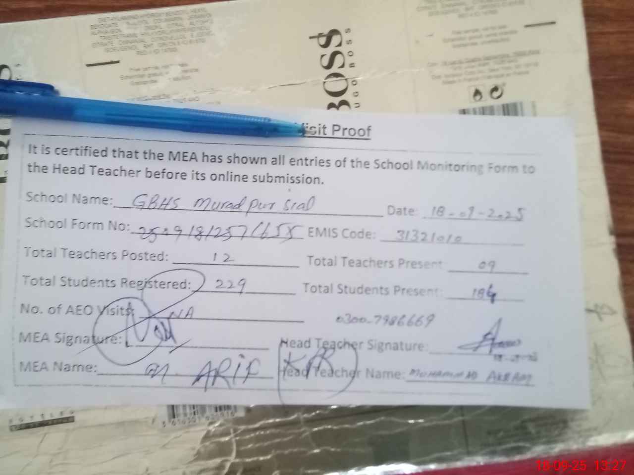 | EMIS Code: 31321010 | Name of School: GHS MURAD PUR SIAL | |||