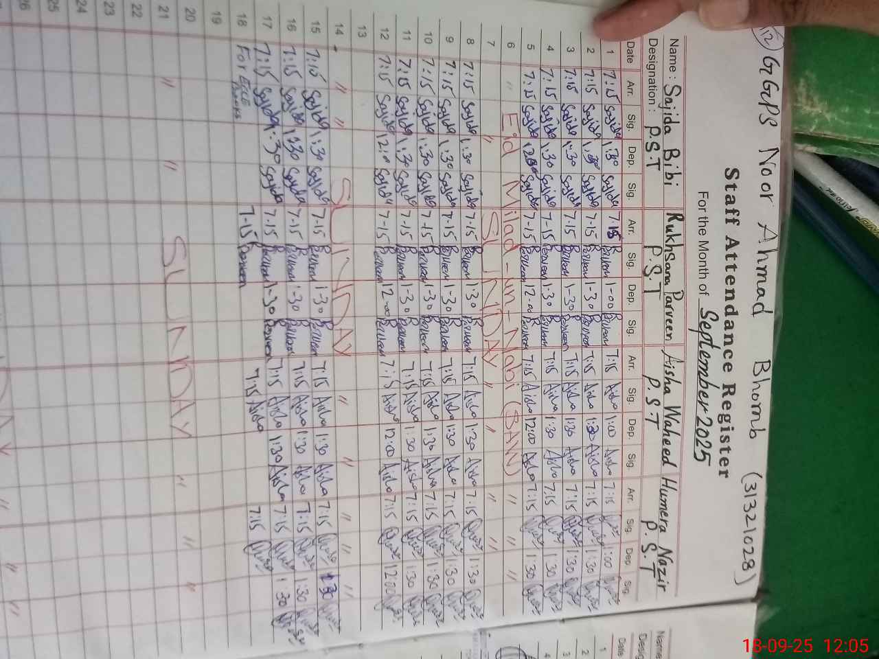 | Monitoring Date: 18-09-2025 | Start Time: 18-09-2025 11:23 AM | End Time: 18-09-2025 12:08 PM | Name of MEA: Mu**** Ar**** (K**** | |