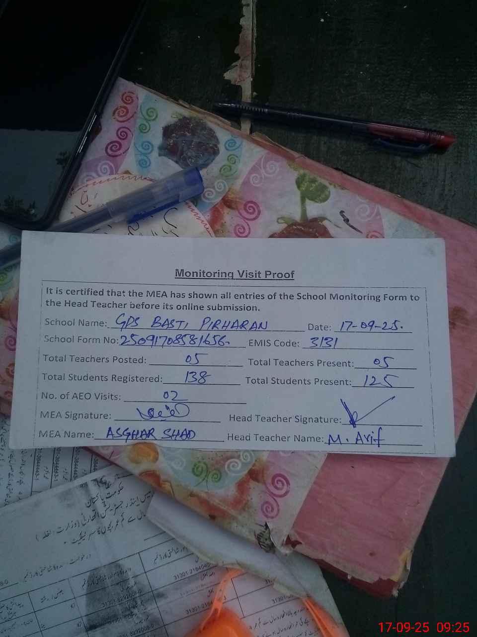 | EMIS Code: 31310169 | Name of School: GPS BASTI PIRHARAN | |||