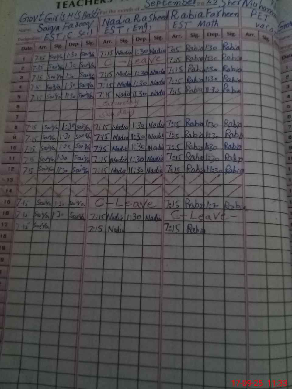 | CNIC | Full Name | Designation | R/C | Absence During Last Calender Month |