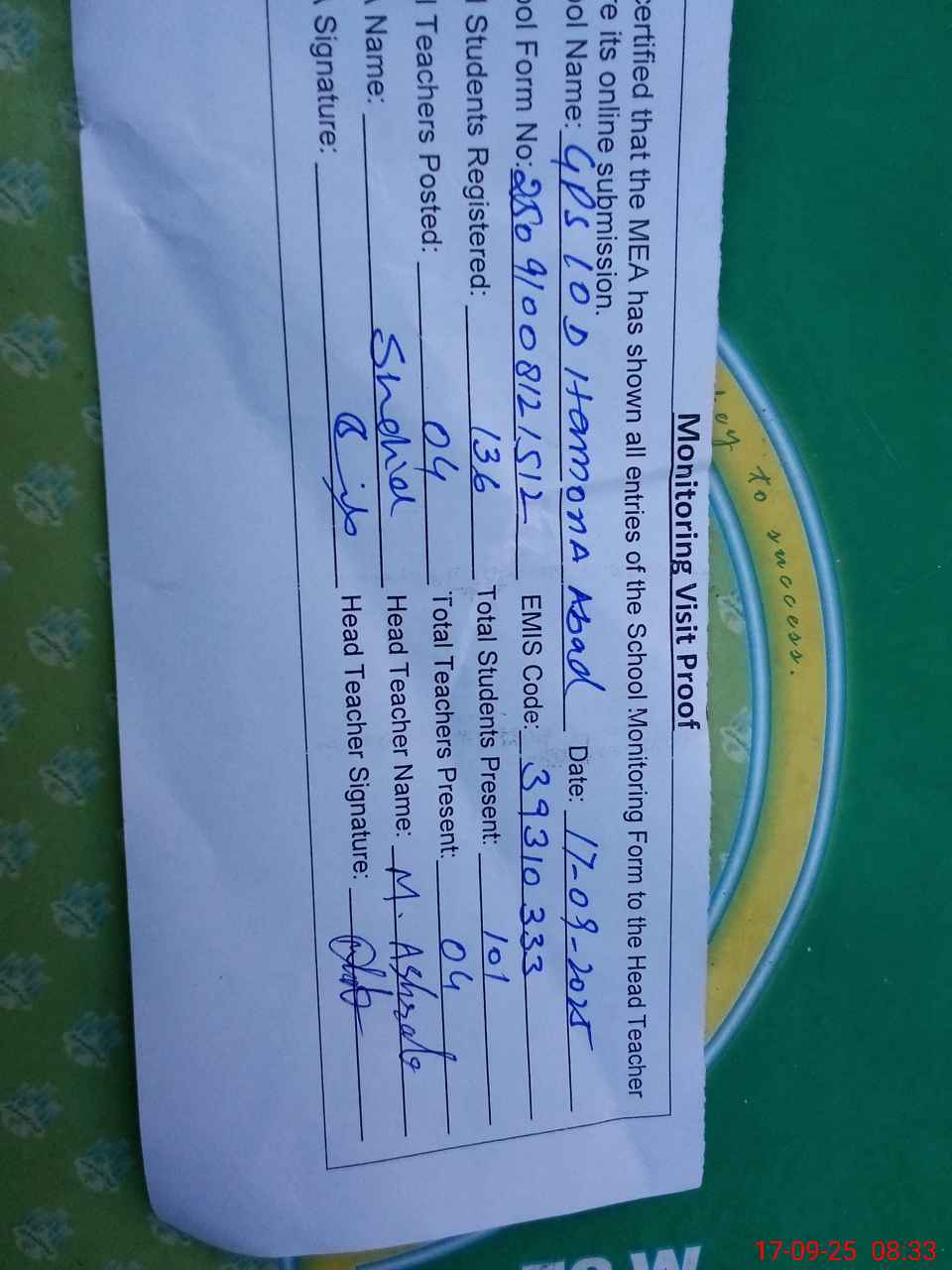 | EMIS Code: 39310333 | Name of School: GPS 10-D HAMONA ABAD | |||