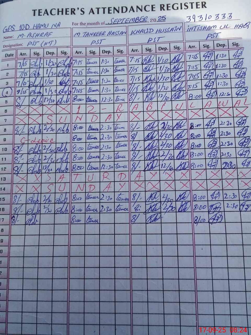 | Name: MU**** AS**** Designation: (School Headmaster's/Headmistress's) PST Phone/Cell Number: 03**** |
