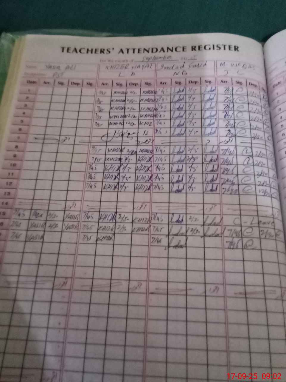 | CNIC | Full Name | Designation | R/C | Absence during last cal. month |