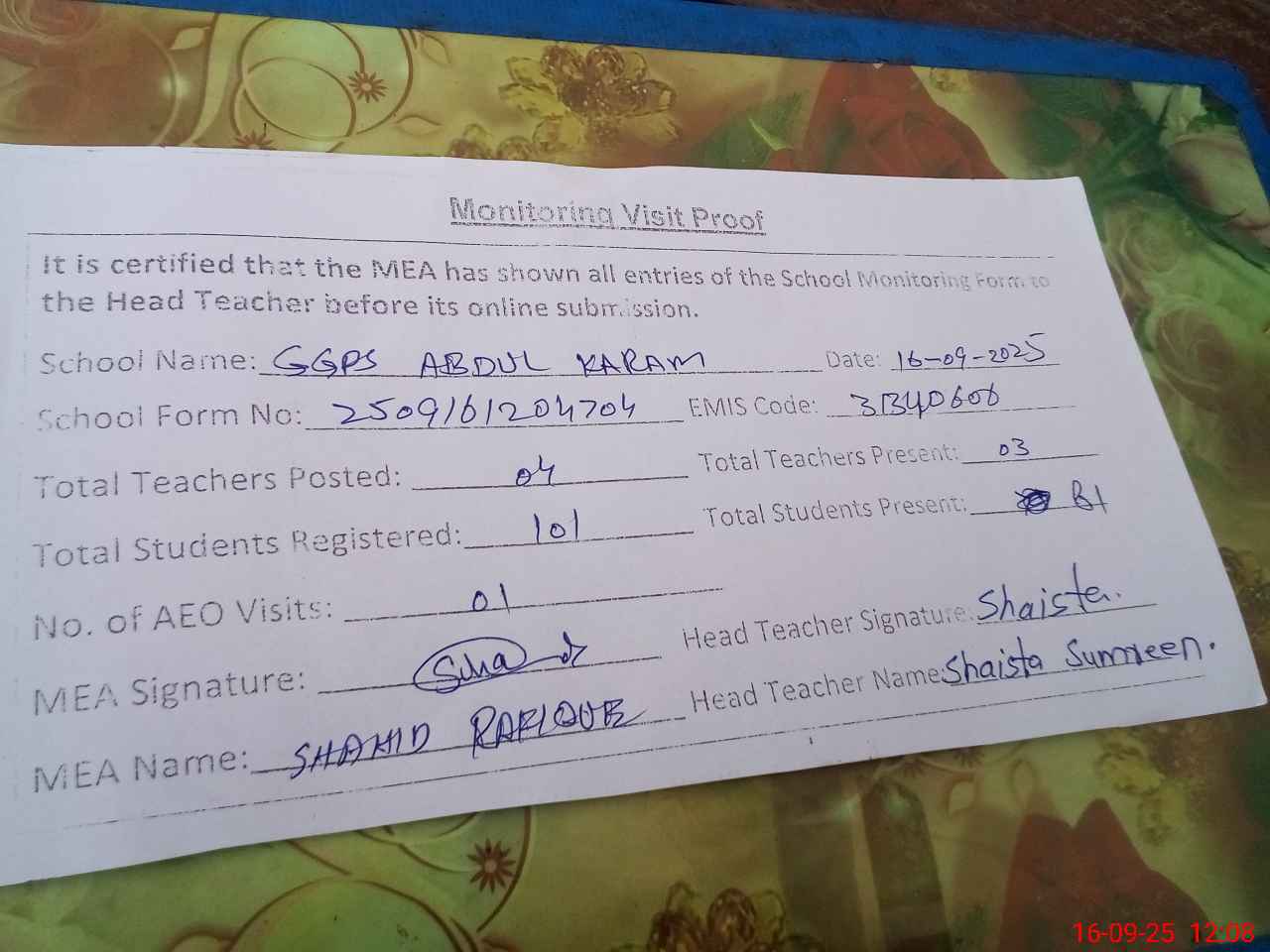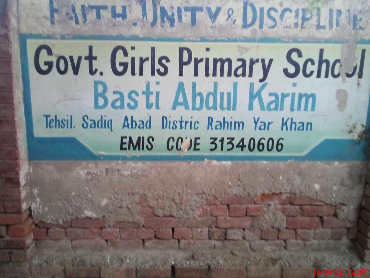 | EMIS Code: 31340606 | Name of School: GGPS ABDUL KARIM | |||