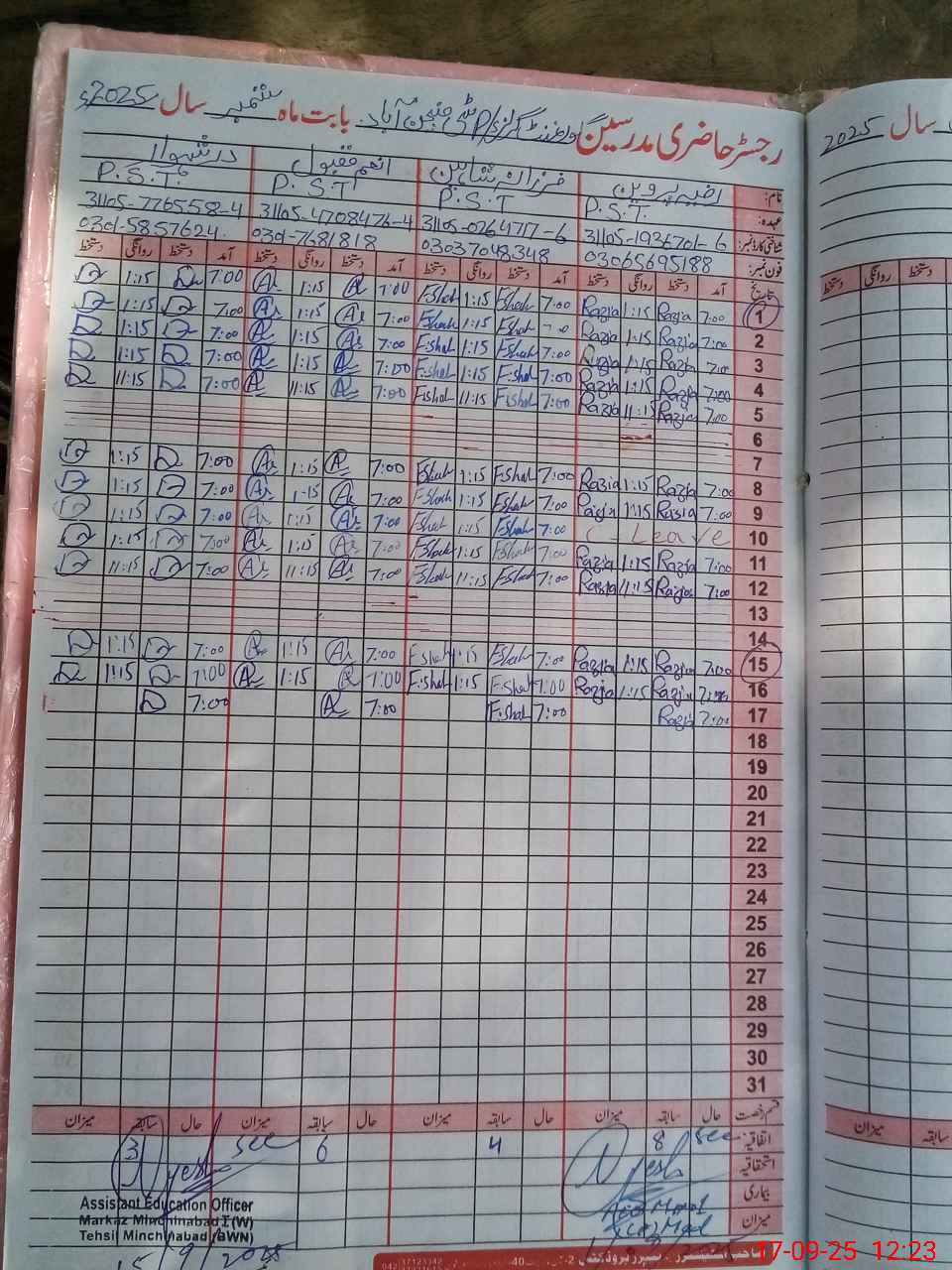 | Name: RA**** PA**** Designation: (School Headmaster's/Headmistress's) PST Phone/Cell Number: 03**** |