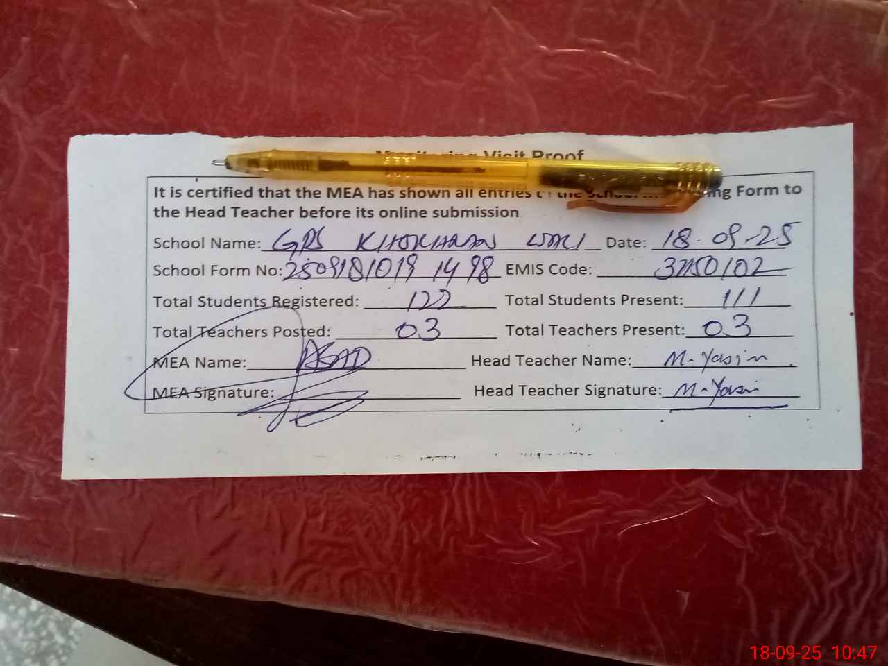 | EMIS Code: 31150102 | Name of School: GPS BASTI KHOKHRAN | |||