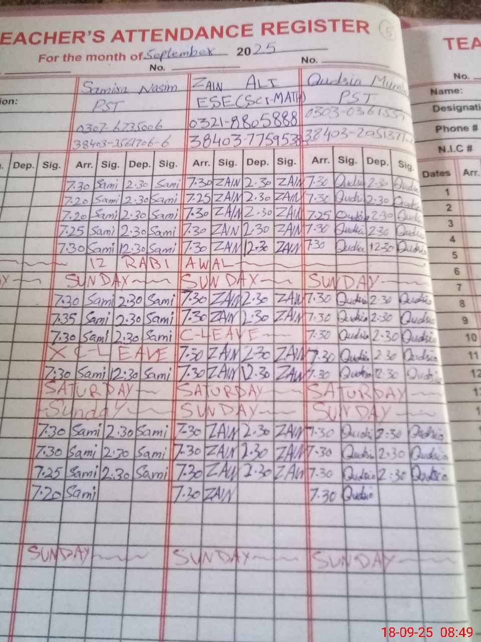 | Name: ZA**** AL**** Designation: (School Headmaster's/Headmistress's) PST Phone/Cell Number: 03**** |