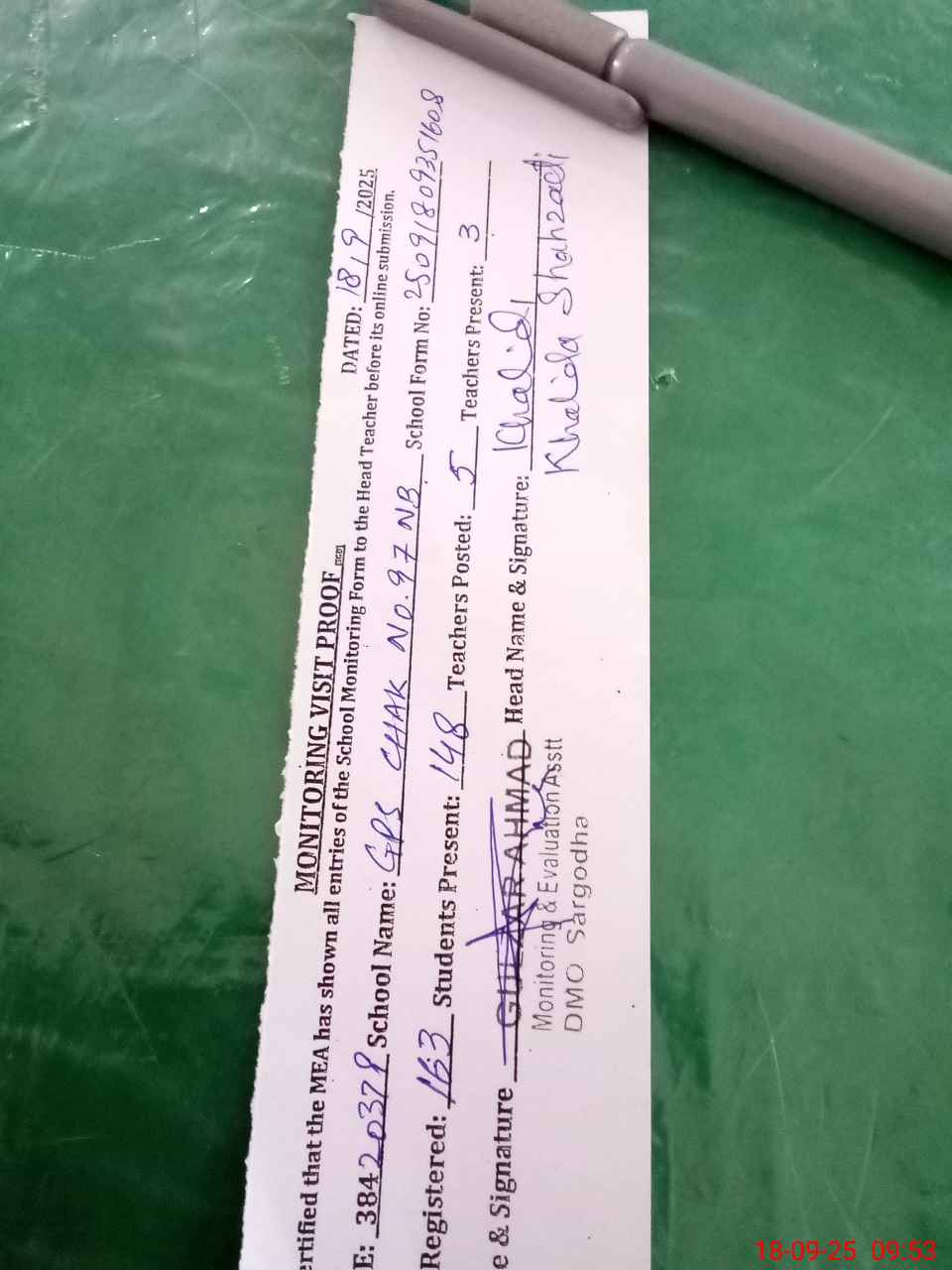 | Name: KH**** SH**** Designation: (School Headmaster's/Headmistress's) PST Phone/Cell Number: 03**** |