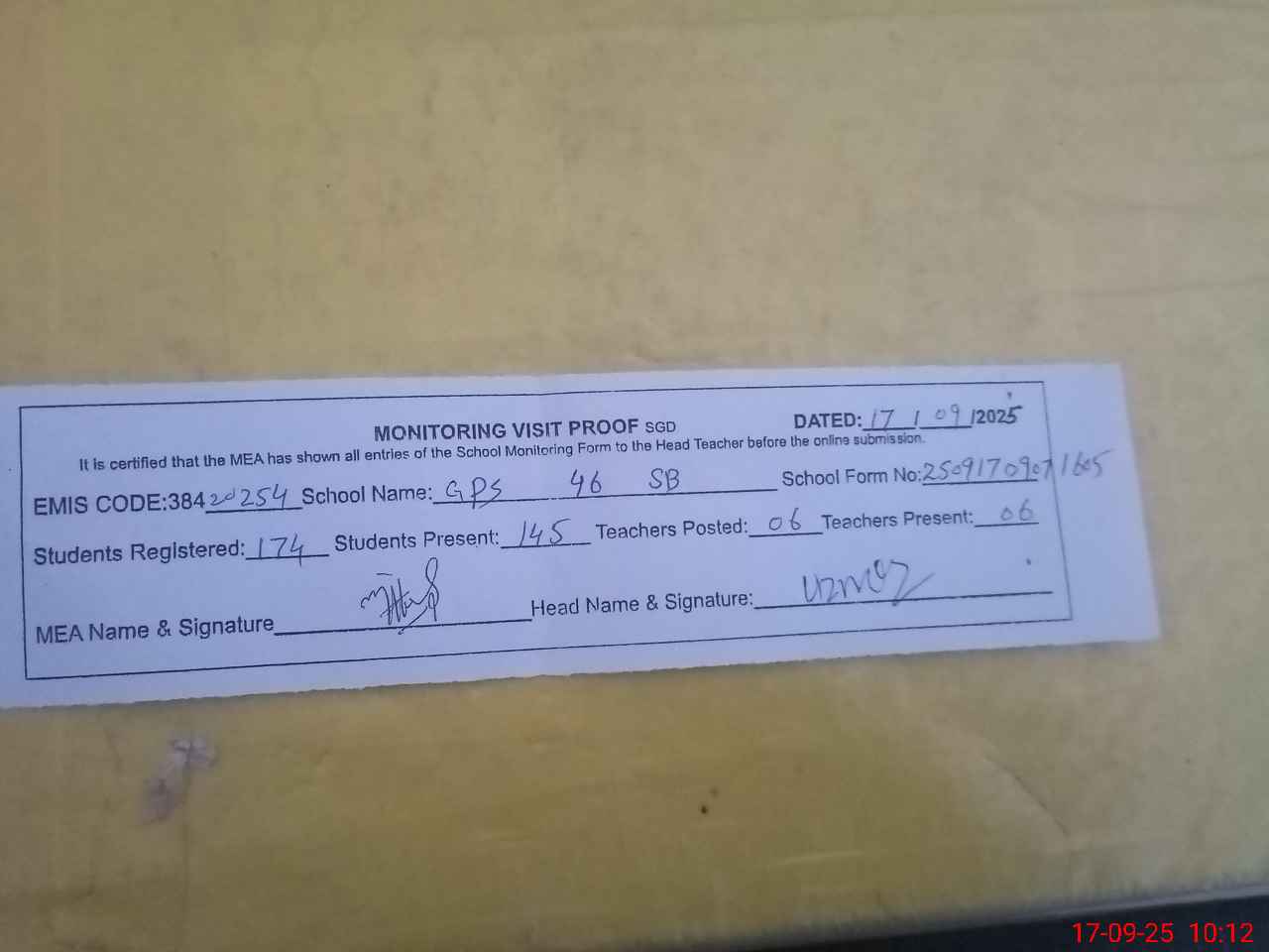 | EMIS Code: 38420254 | Name of School: GPS CHAK NO.46 SB | |||
