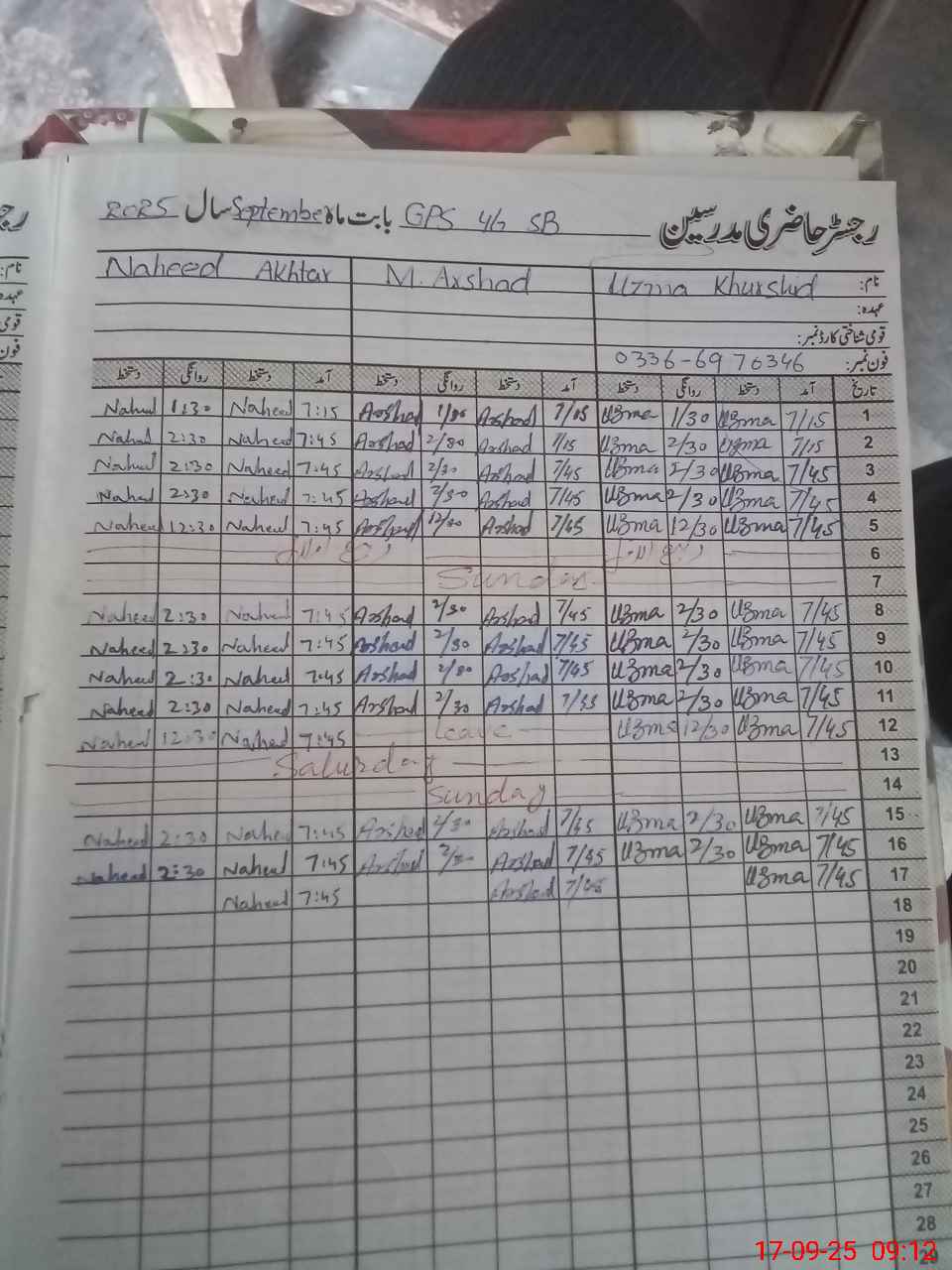 | Name: UZ**** KH**** Designation: (School Headmaster's/Headmistress's) PST Phone/Cell Number: 03**** |