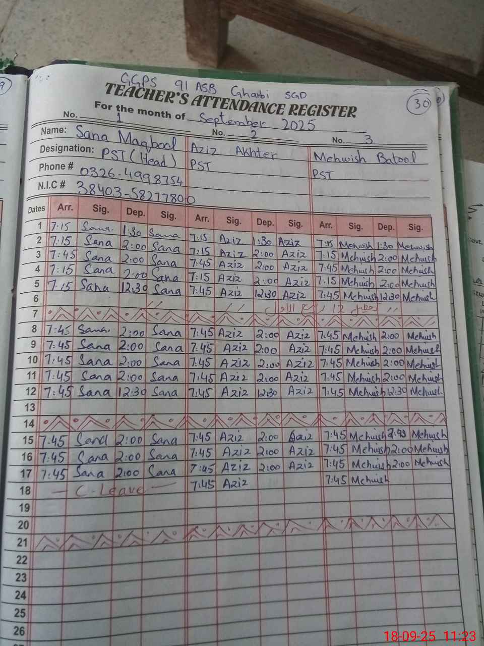 | Name: Sa**** Ma**** Designation: (School Headmaster's/Headmistress's) PST Phone/Cell Number: 03**** |